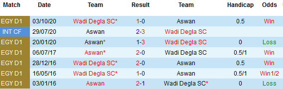 Wadi Degla toàn thắng cả 3 trận đối đầu gần nhất đều diễn ra trong năm 2020. Nhưng thời điểm hiện tại chứng kiến hình ảnh trái ngược nghiêng về Aswan. Đội chủ nhà khởi đầu mùa giải một cách tệ hại với vị trí áp chót bảng điểm.