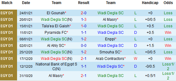 Wadi Degla chỉ thắng duy nhất 1 trận sau 9 vòng và chỉ còn hơn đội đứng bét bảng 1 điểm. Đội chủ nhà ghi được 7 bàn nhưng để lọt lưới gần gấp đôi với 13 lần thủng lưới là những chi tiết cho thấy họ đã sa sút quá nhiều.