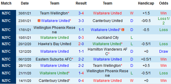 + Soi tỷ lệ kèo châu Á: Trên sân nhà, Waitakere chỉ biết đến hòa và thua liên tiếp 5 trận gần nhất. Đáng nói, Waitakere cũng không biết đến mùi chiến thắng ở 9 lần gặp nhau gần đây giữa 2 đội.