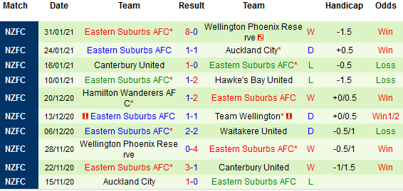 + Lịch sử đối đầu Waitakere vs Eastern Suburbs