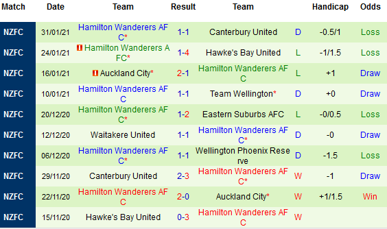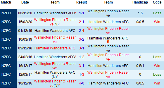 + Lịch sử đối đầu Wellington Phoenix Res vs Hamilton Wanderers