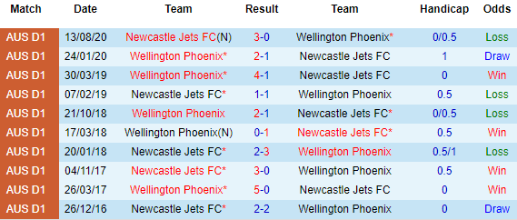Không chỉ đang bết bát ở vị trí cuối cùng, Newcastle Jets còn gặp phải “dớp” khi tới làm khách trước Wellington Phoenix thời gian gần đây. Theo đó thì cả 3 lần ghé thăm sân của Wellington Phoenix mới nhất, Newcastle Jets đều trắng tay khi ra về.