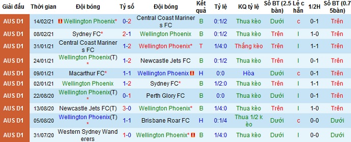 Trong 5 trận gần nhất Wellington Phoenix có được chiến thắng khá bất ngờ ngay trên sân của đội đầu bảng Central Coast Mariners. Tuy nhiên ở 4 trận còn lại đội bóng chỉ hòa 1 và để thua 3. Ngay cả trên sân nhà Wellington Phoenix cũng đang để thua cả 4 trận gần nhất tại đây.