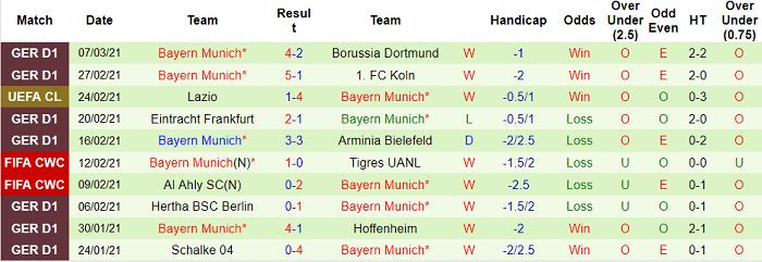 Cả 3 chiến thắng gần đây trên mọi đấu trường của Bayern Munich đều có cách biệt từ 2 bàn trở lên. Vì vậy, tỷ lệ chấp 1 3/4:0 không phải trở ngại quá lớn với nhà đương kim vô địch Bundesliga.