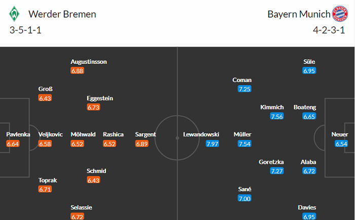 Đội hình dự kiến Werder Bremen vs Bayern Munich