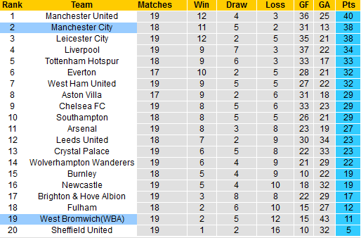 West Brom từ lâu đã trở thành con mồi ưa thích dành cho Man City. Lần cuối cùng đội chủ nhà giành chiến thắng trong các trận đối đầu trong khuôn khổ giải Ngoại hạng Anh đã diễn ra từ năm 2008 với tỷ số 2-1.