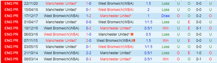 Phong độ và thống kê đối đầu West Brom - Man United gần đây:
