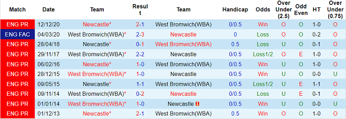 Phong độ và thống kê đối đầu West Brom - Newcastle