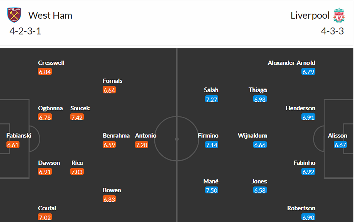 Đội hình dự kiến West Ham vs Liverpool