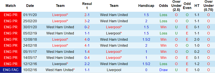 Tỷ lệ thắng kèo của West Ham tại Ngoại hạng Anh 2020/21 lên tới 65.00%, ấn tượng hơn đáng kể so với 40.00% của Liverpool. Trên sân khách, tỷ lệ thắng kèo của Liverpool cũng chỉ đạt 40%. Các cầu thủ do HLV Juergen Klopp dẫn dắt không còn là sự lựa chọn đáng tin với giới đầu tư.