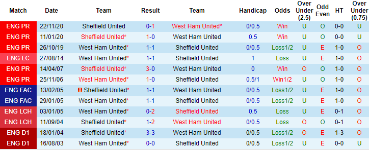 Sheffield United bất bại cả 2 lần làm khách gần đây trên sân của West Ham. Xa hơn, 6 lần trước đó tiếp đón Sheffield United trên sân nhà, West Ham để mất điểm tới 5 lần (thua 1, hoà 4). Lần tái đấu sắp tới, Sheffield United tiếp tục mang đến hứa hẹn vào khả năng thoát thua nhờ phong độ cực kỳ khởi sắc giai đoạn gần đây.