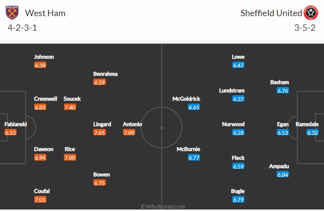 Dự đoán tỷ số West Ham 1-1 Sheffield United