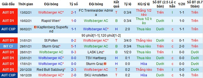 Phong độ gần đây của Wolfsberger cũng khá thất thường khi sau 5 trận gần nhất đội bóng có được 3 trận thắng và để thua 2 trận, tính cả trận thắng tại cúp quốc gia. Trên sân nhà thành tích của đội bóng cũng không tốt hơn bao nhiêu với 2 trận thắng, 2 trận hòa và 1 trận thua sau 5 trận gần nhất tại đây.