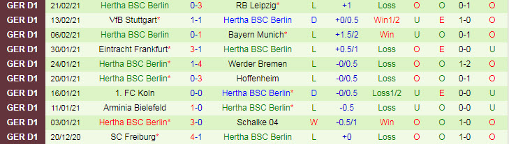 + Thống kê 10 trận gần nhất của Hertha