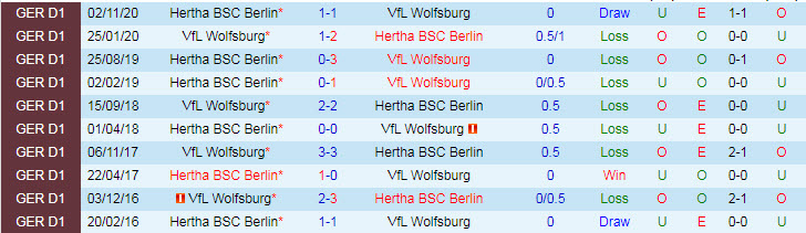 Phong độ và thống kê đối đầu Wolfsburg - Hertha gần đây:
