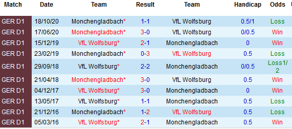 + Lịch sử đối đầu Wolfsburg vs M’gladbach