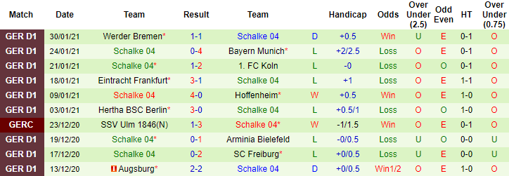 + Thống kê 10 trận gần nhất của Schalke