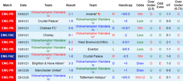 + Thống kê 10 trận gần nhất của Wolves