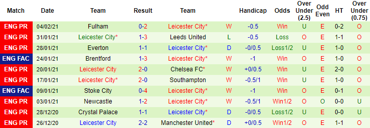 + Thống kê 10 trận gần nhất của Leicester