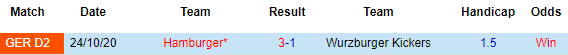 Hamburger cần giữ vững vị trí trong top 2. Còn với Wurzburger Kickers, đội bóng này chỉ là tân binh của mùa giải năm nay và họ cũng đang trên đường trở lại giải hạng 3. Wurzburger Kickers hiện xếp bét bảng và kém vị trí an toàn tới 10 điểm, cách biệt rất khó san lấp.