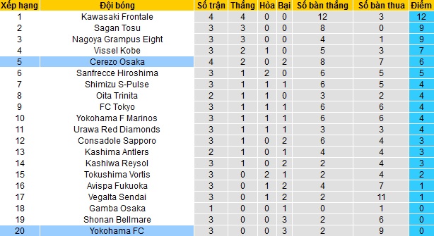 Bảng xếp hạng J-League trước vòng 5