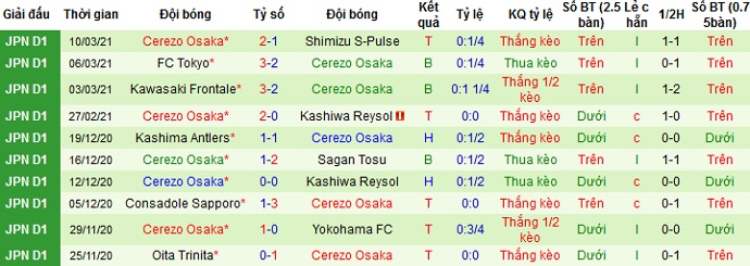 + Thống kê 10 trận gần nhất của Cerezo Osaka