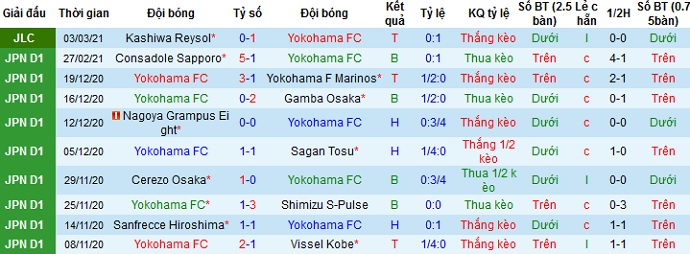 + Thống kê 10 trận gần nhất của Yokohama FC
