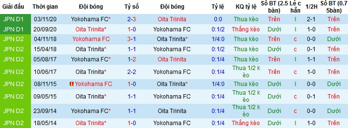 + Lịch sử đối đầu Yokohama FC vs Oita Trinita
