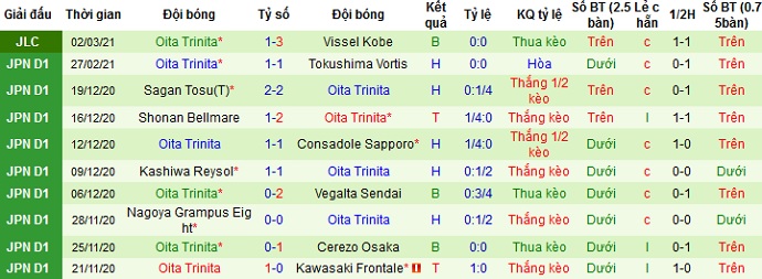 + Thống kê 10 trận gần nhất của Oita Trinita