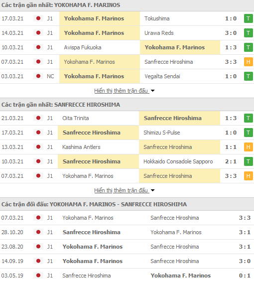 Phong độ và thống kê đối đầu gần đây Yokohama Marinos vs Sanfrecce Hiroshima: