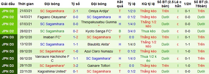 + Thống kê 10 trận gần nhất của Sagamihara