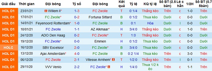 Trong 5 vòng đấu gần nhất Zwolle thắng 2 trận, hòa 1 và để thua 2. Thành tích sân nhà của đội bóng cũng không tốt hơn bao nhiêu với 1 trận thắng, 3 trận hòa và 1 trận thua trong 5 trận gần nhất tại đây.