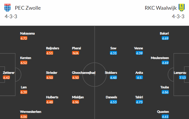 Đội hình dự kiến Zwolle vs Waalwijk