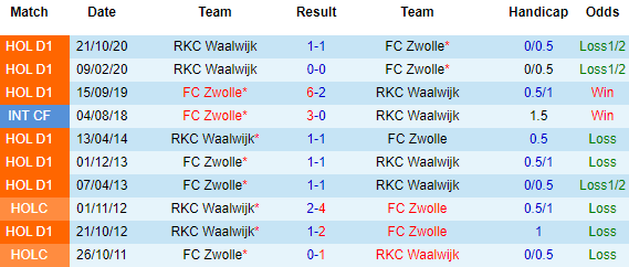 + Lịch sử đối đầu Zwolle vs Waalwijk