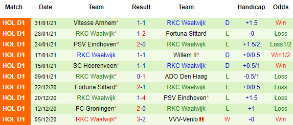 + Thống kê 10 trận gần nhất của Waalwijk