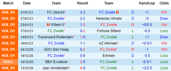 + Thống kê 10 trận gần nhất của Zwolle
