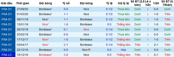 + Lịch sử đối đầu Nice vs Bordeaux