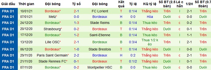 + Thống kê 10 trận gần nhất của Bordeaux