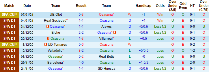+ Thống kê 10 trận gần nhất của Osasuna
