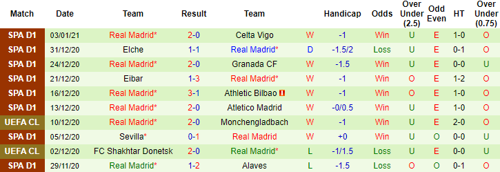 + Thống kê 10 trận gần nhất của Real Madrid