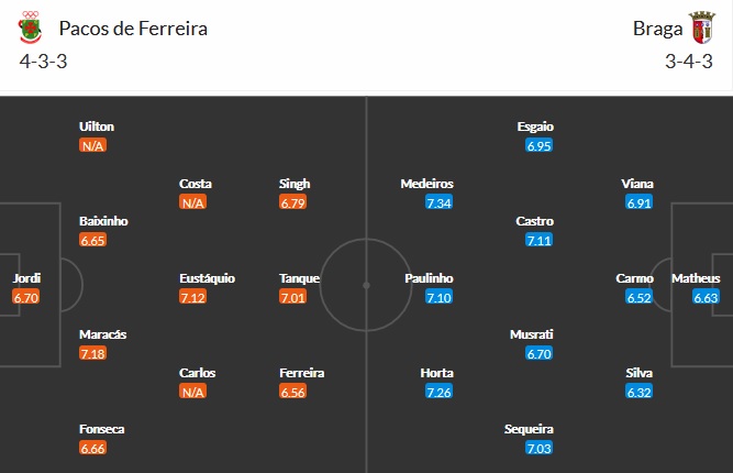 Đội hình dự kiến Paços Ferreira vs Sporting Braga: