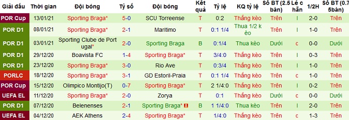 + Thống kê 10 trận gần nhất của Sporting Braga