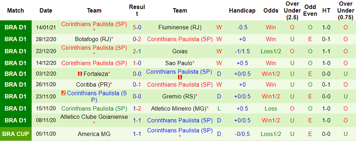 - Thống kê 10 trận gần nhất của Corinthians