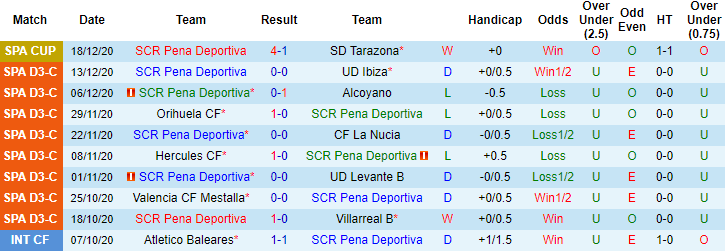 Phong độ gần đây của Sabadell cũng đang khá vào phom, 5 trận vừa qua tính trên mọi đấu trường họ đạt thành tích bất bại với 2 chiến thắng và 3 trận hòa. Trên sân khách, Sabadell thắng 3, hòa 1 ở 4 trận vừa qua. Thế nhưng điều đáng bàn là Pena Deportiva lại đang tạo được nhiều sự tin tưởng hơn nơi người hâm mộ.