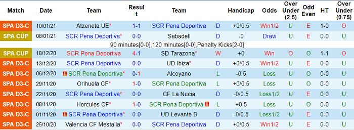 - Thống kê 10 trận gần nhất của Pena Deportiva
