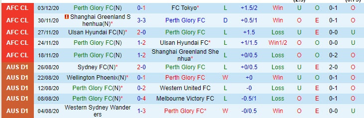 + Thống kê 10 trận gần nhất của Perth Glory