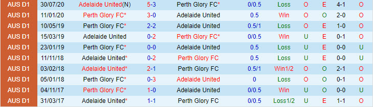 Phong độ và thống kê đối đầu Perth Glory - Adelaide gần đây:
