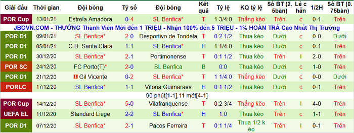 Là đương kim vô địch và thắng tới 10 trận từ đầu mùa nhưng tỷ lệ thắng kèo của Benfica tương đối thấp: 30.77% (thắng 4, thua 9). Họ thậm chí là đội có tỷ lệ thắng kèo thấp nhất giải VĐQG Bồ Đào Nha mùa này. Vì vậy, lựa chọn Benfica không mang lại nhiều niềm tin cho giới đầu tư.