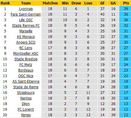Sau quãng thời gian sa sút hồi đầu mùa, Lyon đã trở lại cực kỳ mạnh mẽ và họ đã leo lên dẫn đầu bảng sau 18 vòng đầu tiên. Chỉ cần thêm ít nhất 1 điểm, Lyon sẽ giành chức vô địch lượt đi và đây là điểm tựa để họ nghĩ về chiếc Cúp vào cuối mùa.