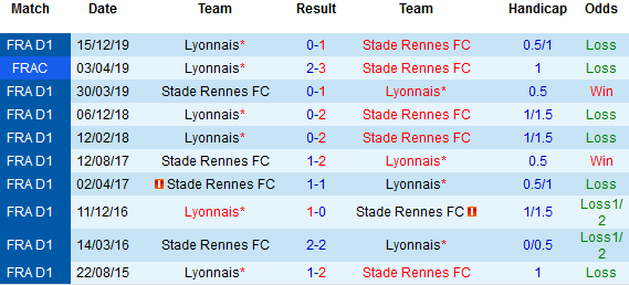 + Lịch sử đối đầu Rennes vs Lyon
